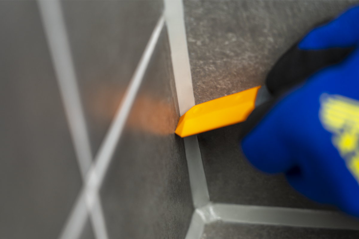- Unealtă de netezire din plastic special pentru formarea profesională a rosturilor în domeniul pardoselilor, sanitarilor, gresiei și pietrei naturale